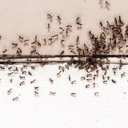 Mieren vormen vaak grote kolonies en kunnen binnen gebouwen op zoek gaan naar voedsel, vooral zoetigheden. Ze volgen geursporen en kunnen snel grote aantallen bereiken. Ongediertebestrijders gebruiken lokaas met gif dat de werkmieren meenemen naar het nest, waardoor ook de koningin en de kolonie worden uitgeroeid. Naast het toepassen van gif, is het belangrijk om de toegangspunten van de mieren te lokaliseren en af te dichten, evenals voedselbronnen op te ruimen. Het grondig reinigen van oppervlakken en het verwijderen van voedselresten helpt om de overlast van mieren op de lange termijn te verminderen.
